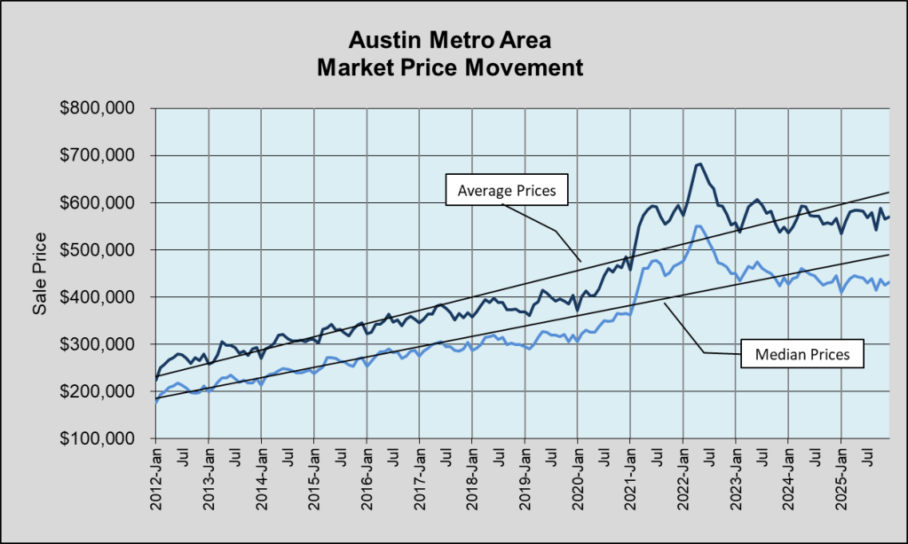 Finally, I have commented many times about the problematic trend in home prices in the Austin metropolitan area: