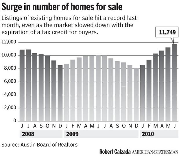 There is no doubt that sellers’ expectations for the summer selling season coupled with two rounds of homebuyer tax incentives which accelerated demand has left the Austin/Central Texas market with inflated listing inventory. It is also true that June sales were down 3.7% from May and 1.8% compared to April. On the other hand, June home sales were 10.8% higher than in March. This is clearly the effect of the homebuyer tax credit program that required closing by June 30.