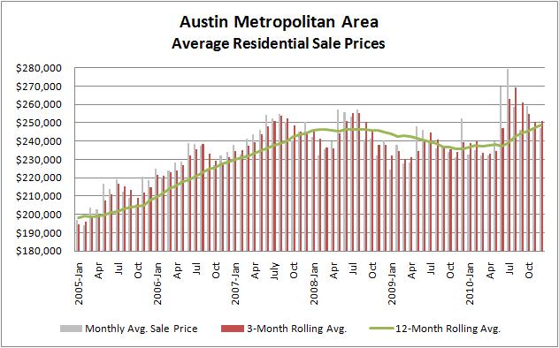 You can see that the average sale price in December 2010 was slightly below December 2009, but look at the magnitude of the price spike we saw at the end of 2009! A small decline in comparison really isn’t disappointing.