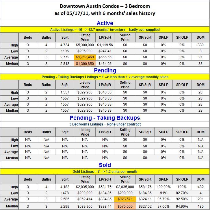 Austin Downtown Condo Stats - 3 BR