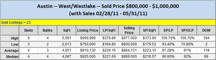 The question I received focused specifically on the $800,000 to $1,000,000 price range: