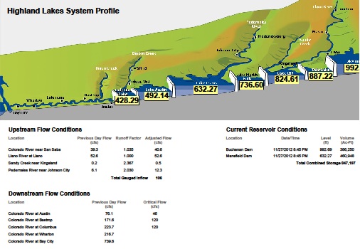 I wrote earlier this week about the need for the Texas legislature, during its next session beginning in January 2013, to fund the State Water Plan (see Ask the legislature to fund the water plan). I am writing now to share an update on Lake Travis and Lake Buchanan, where Austin and Travis County get virtually all of their water. This graphic from the LCRA provides a very good snapshot: