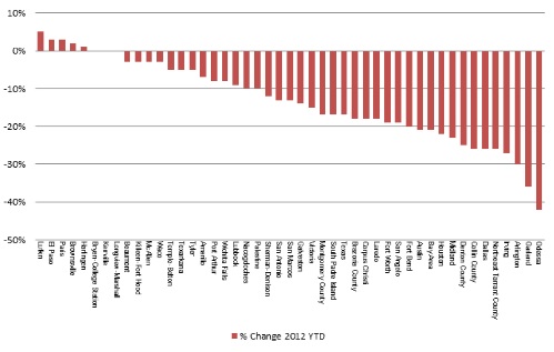 First, look at how home sales growth in the Austin/Central Texas market compared to other cities in the state: