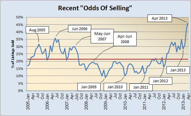 In April, 46% of all active listings sold! The last time we saw a market anything like this was in 2000: