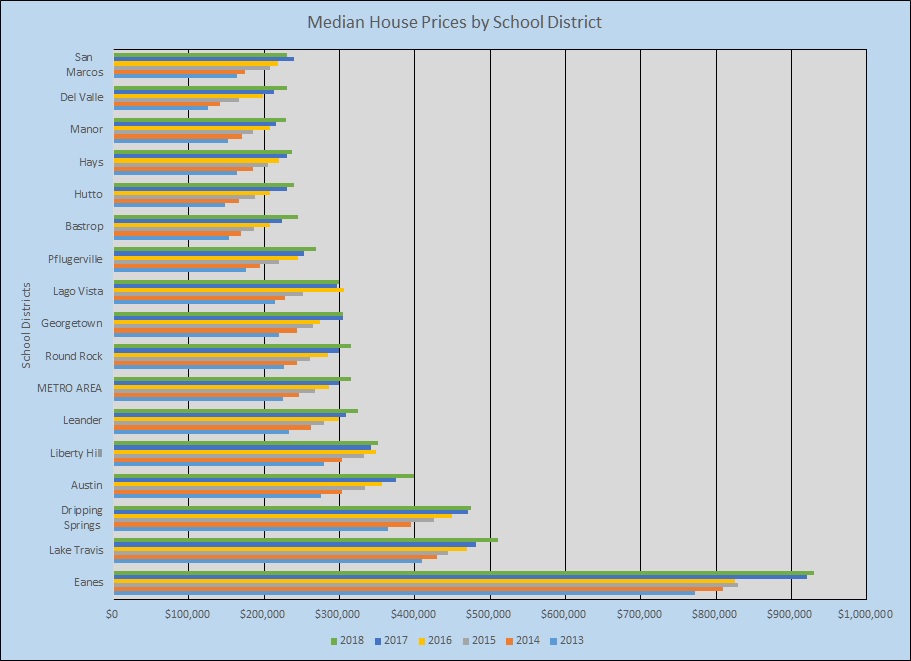 Readers who follow me here know that this kind of story makes me wonder about more specifics, and this one does just that. As a key point of reference, note that according to MLS data, the median price of a single-family home in the five-county Austin Metropolitan Area at this point in 2018 is $315,000. There are ten school districts with median home prices below that level: