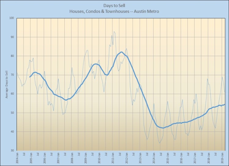 Finally (for this post), the five-year trend of increasing “days to sell” appears to continue: