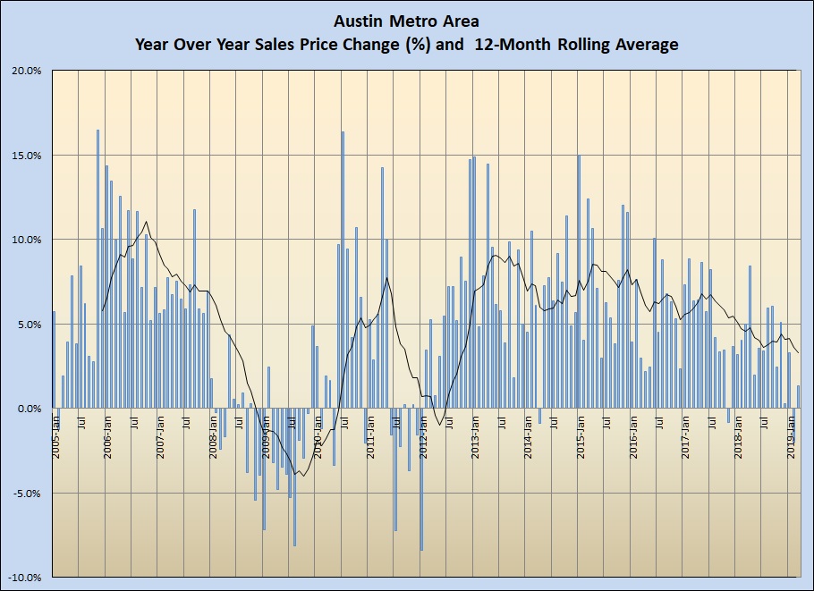 You can see that unit sales growth has been sporadic since 2014, but dipped noticeably in the second half of 2016 and again from October 2018 through March 2019. Year-over-year price growth has been declining fairly steadily since 2015.