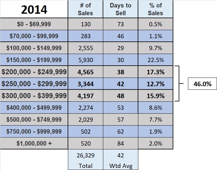 - The below-$300,000 price range, which represented 64% of sales in 2014 declined to just under 50% by the 1st quarter of this year.