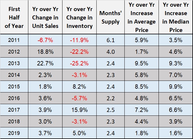A few weeks ago I promised to update my market dashboard through June. I’ll add some comments later about the dashboard and about what how our market behaved January-June 2019. To start, here are the primary metrics I have watched for many years: