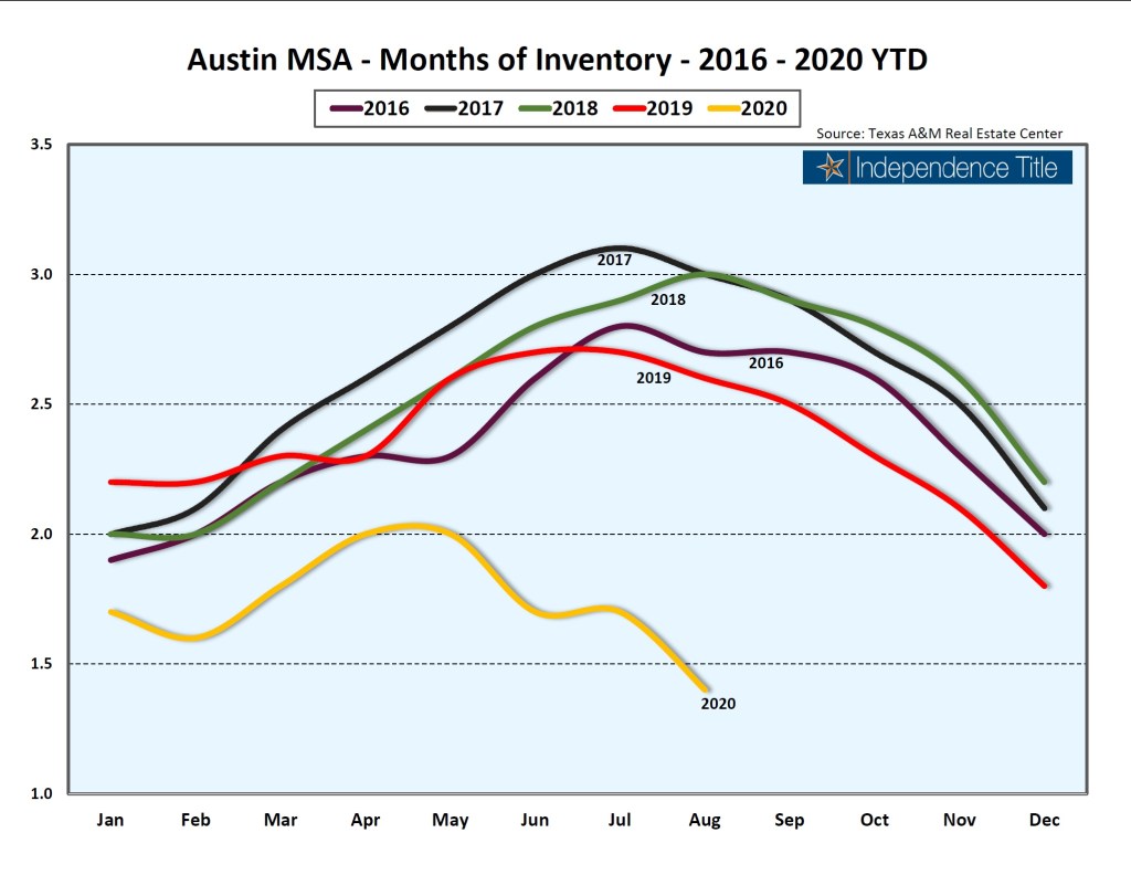 I have told you for a long time that demand for housing in the Austin area has exceeded the supply of homes for sale. Courtesy of Independence Title, a few charts tell this story very well.