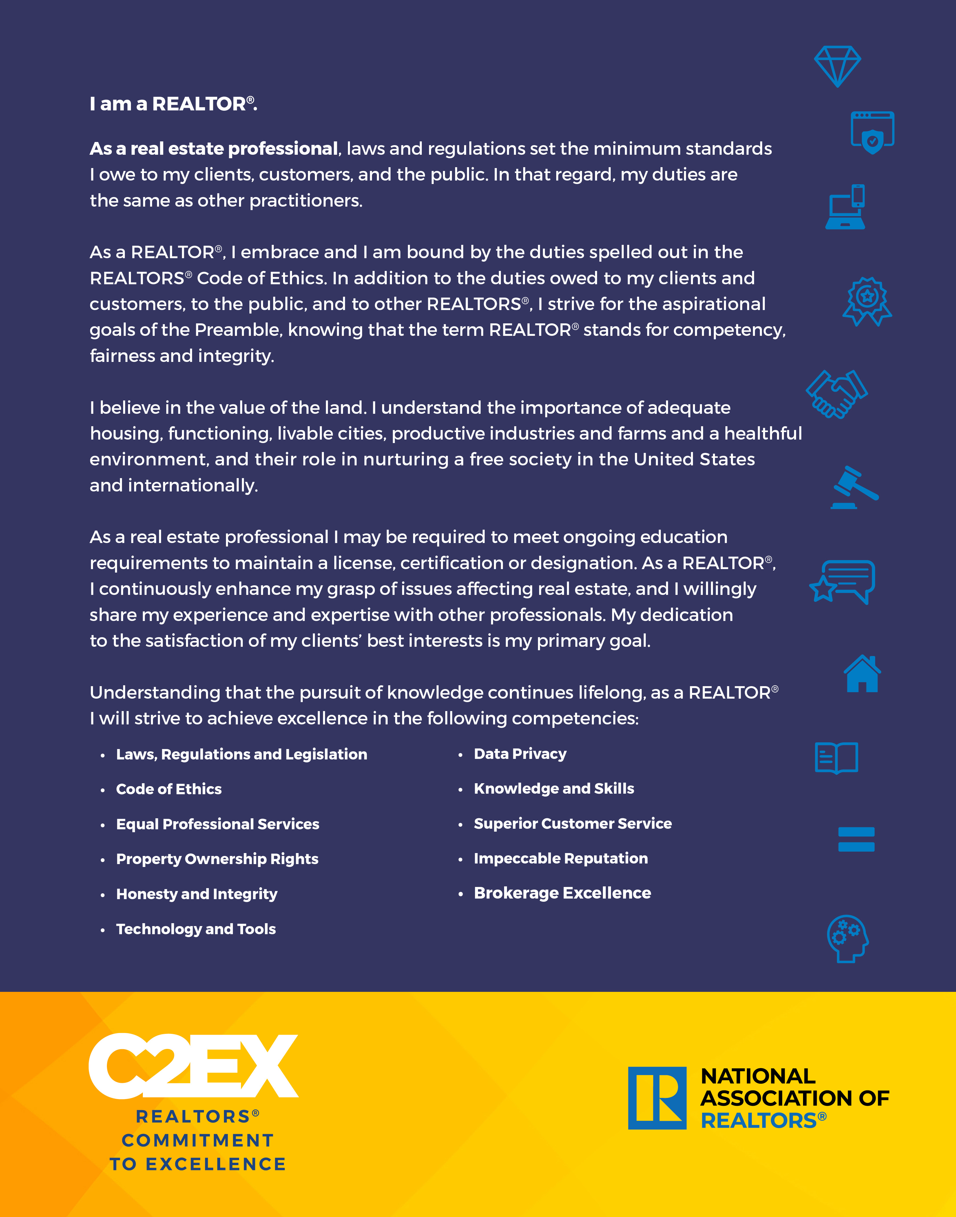 I have been working to improve professionalism in the real estate industry for many years, and I am proud to have taken another step. I have been chosen to join the first cadre of ambassadors for the National Association of REALTORS® Commitment to Excellence program.