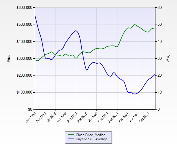 Will we see this kind of market behavior again in 2022? Without increasing the supply of homes — which seems unlikely — then this kind of accelerated sale cycle is probable. I’ll update you in a few weeks with more details about 2021, but the trends shown in the graph at the top of this post are worth watching.