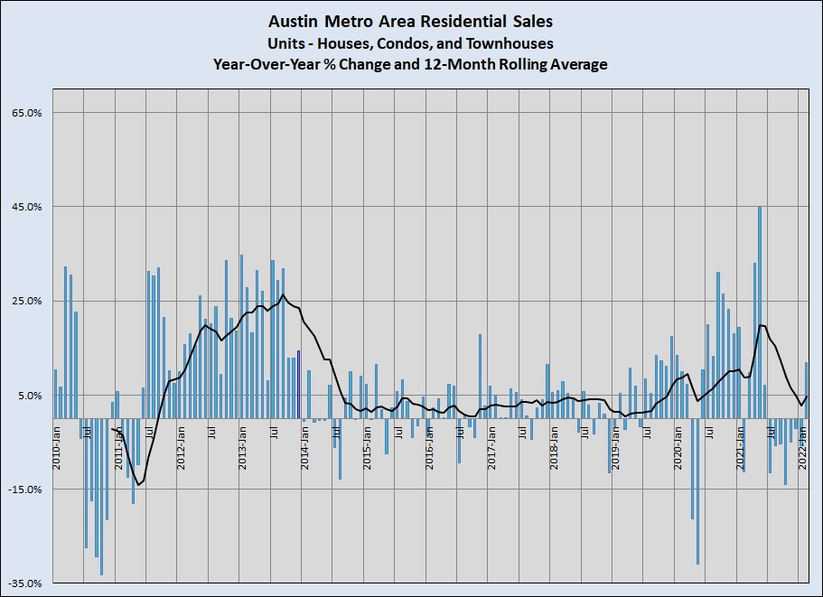 The very low supply hampered unit sales, down year-over-year for all of the second half of 2021. We saw that metric jump again in February 2022, though: