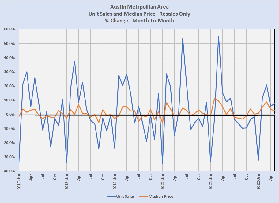 March 2022 unit sales were up 20.8% from February. April sales increased just 3.6% over March. At the same time that shift happened, the pace of median price growth went from 8.9% to 2.9%.
