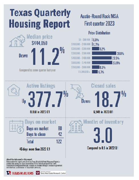 I’ll have more to say on this when I provide a quarterly update of my market dashboard, but you can see that the media price in the Austin metro was down 11.2% compared to the same period last year and that the number of closed sales was down almost 19%! The number of active listings soared by almost 400% and the time it took to sell and close was up 46 days — 60% longer than a year ago. Even with those inventory and sales figures, though, the Months of Inventory stat remains at half of what market economists have long considered “balance.” Technically, we remain in a seller’s market, disrupted by higher mortgage interest rates, recession concerns, and general economic concerns among many prospective home buyers.