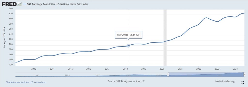 Yes, I understand that the text in that chart may not be legible on your device (See https://fred.stlouisfed.org/series/csushpinsa for the details.), but the shape and direction of the graph line is clear, and is very different from our experience in Central Texas: