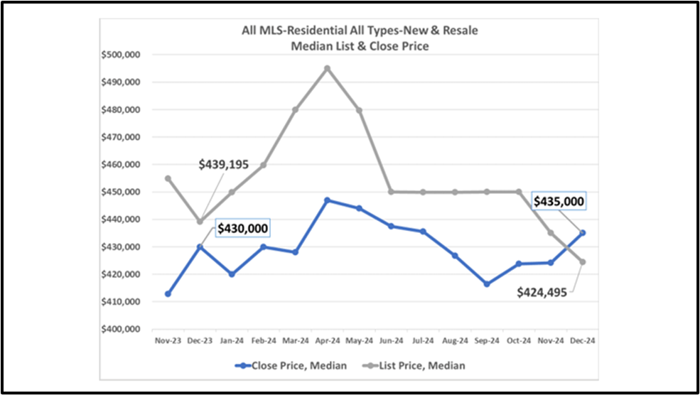 Sellers were slow to adapt to the changing conditions, and you can see their ultimate reaction in the 4th quarter of 2024, with the median list price last month lower than the median sale price.