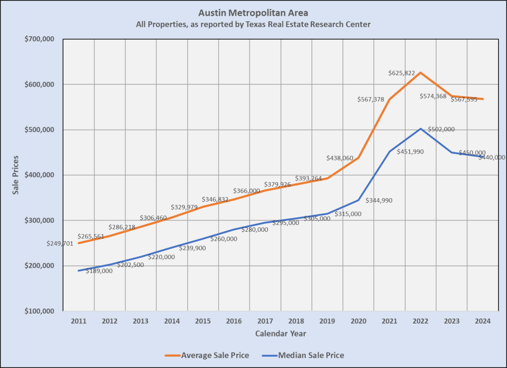 And this look at the year-over-year changes in average and median prices helps to explain the market environment we are experiencing in 2025: